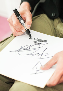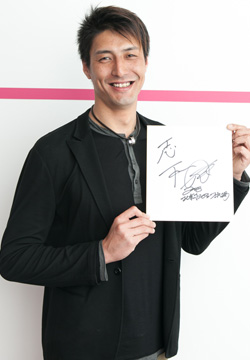 色紙とボールに書かれたメッセージは、ご自身のブログのタイトルにもなっている「志」という言葉。「志を持ち続けていれば、どれだけ回り道をしてもそこにたどり着けると思います。」と力強いメッセージをいただきました。