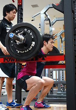 「週に2回ウェイトトレーニングをやって、あとはプライオメトリックストレーニング、スピードトレーニングやアジリティ、インターバルトレーニングなどで回復力をつけたりをしています。ウェイトトレーニングはウェイトルームで行い、インターバル他のトレーニングは卓球場や、陸上競技場もあるのでそこに走りに行ったりしてやっています。」