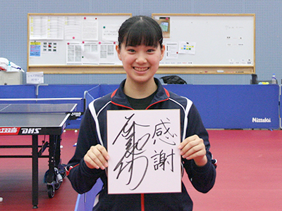 「まだお若いですが、たくさん努力をして将来の卓球界を背負って立つ注目選手の一人になりました。背中を見て卓球をする選手も増えてきます。最後に、これからの選手に対してメッセージをお願いします。」