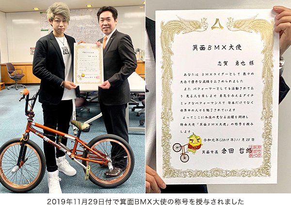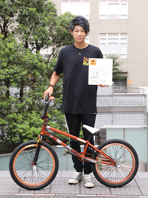 「高校3年の時にパフォーマーという職業を知って、そこから目指しだしました。BMXはプロでも他の仕事をしながらの人が多いので、僕も当初はスーパーで働きながらパフォーマンスをしていました。大会やパフォーマンスがある日はスーパーを休ませてもらいました。BMXをやりながら別の仕事もする予定でしたが、パフォーマンスをされている人から、『BMXでパフォーマンスをする人はいないからやってみたら?』と言われたのがきっかけで、始めたらすごく楽しくて。今はBMXだけを仕事にして生活できる人は数名程しかいませんが、BMXの先輩方やそれに関わる様々な方が、野球やサッカーのようにメジャースポーツにするため尽力して下さっています。BMXの未来はとても明るいと信じています。」