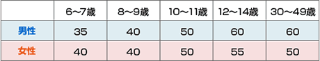 たんぱく質の推奨量(g)