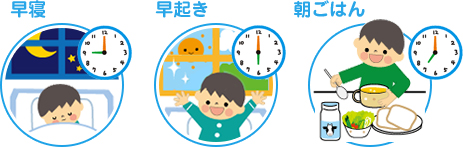 朝食の大事さは周知されてきていますが、特に成長期では、すこやかな成長のためと同時により良い食習慣の習得のためにも大事です。“朝ごはん”を継続的に習慣化するためには『早寝・早起き・朝ごはん』とセットで考えることもその一つの方法です。