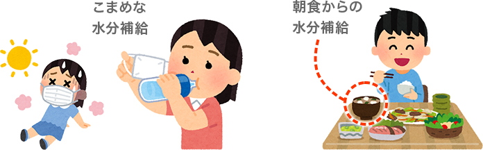 マスクを付けているために、水分補給のタイミングが取りにくくなってしまいます。しかし、『感染防止の3つの基本』には、“マスクの着用”が入っています。ただ、マスクを付けていることで体温はかなり上昇しているので、いつも以上に気を付けて水分補給を心掛けるようにしましょう。