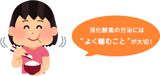 なお、最近では“噛むこと”で“咀嚼筋(口の周りの筋肉)”が発達すること、そして咀嚼筋とパフォーマンスの関係も研究されてきています。“噛むこと”で、競技的にもパフォーマンスアップが言われていますし、脳の働きにも良い影響があるようです。消化酵素の分泌促進のみならず、様々な良い影響がある“噛む力”を意識してみましょう。