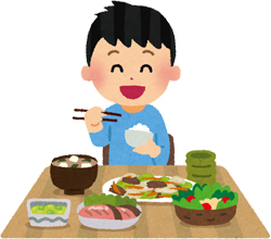 同じ運動でも、年齢(体格)や種目、強度によって消費するエネルギーは違ってきますので、参考程度でも運動で使うエネルギー量(例:体重35㎏10歳男子が1時間サッカーをした場合≒370kcal)を知っておくことは、食事の大事さを理解することにつながります。「疲れているから夕食はいらない」や「朝食を食べるよりも寝ていたい」など ⇒ 絶対避けたい!