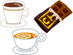 ”カフェイン”はコーヒーに限らず、紅茶・緑茶・コーラ・ココア・チョコレート等、色々な食品に含まれています。