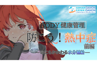トップページ おとなの健康栄養情報 ヘルシーエイジング ウェルビーイング おとなの健康栄養情報 ヘルシーエイジング ウェルビーイング 2023年07月 防ごう、熱中症!“後編” スポーツや体を動かす仕事をしている場合、熱中症予防のための水分補給がより一層重要になります。「防ごう、熱中症!“後編”」では、運動時にどのように水分補給をすればよいか、その目安についてお伝えします。 2023年07月 防ごう、熱中症!“前編” 気温が高くジメジメとした日本の夏を元気に乗り切るために大事なのが“水分補給”です。この動画では、体温調節のメカニズムや水分補給のポイントについて、ヴァーチャルキャラクターの段野あさひ先生がお伝えします。 2022年09月 おとなのための健康・栄養講座 #12 できることからはじめよう 健康づくりを行う上で大事なポイントの1つが「その取組が自分にとって無理なく続けられるものか?」です。小さな頑張りも、長く続けることで大きな成果につながるからです。みなさんもご自身の生活を振り返って、“できること”からはじめてみませんか? 2022年08月 おとなのための健康・栄養講座 #11 血糖値と生活習慣 血液中のブドウ糖の量(=血糖値)が多くなりすぎる病気“糖尿病”の怖いところの1つは、血管を傷つけて動脈硬化を進行させることです。動脈硬化が進むと、脳卒中などの大きな病気につながるからです。 血糖値が高くなりやすい生活習慣、あなたもチェックしてみませんか? 2022年07月 おとなのための健康・栄養講座 #10 血圧と生活習慣 血圧とは、流れている血液が血管の壁を押す力のことです。ホースに大量の水を流したり、ホースの先をつまんだりするとホースの内側には強い水圧がかかるのと同じように、血液量が多かったり血管が狭かったりすると、血管に強い力がかかり(=血圧が高くなり)ます。 1 2 3