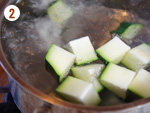 鍋に湯を沸かして塩を少々(分量外)加え1のズッキーニを1分ほど茹でる。