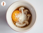 しめじ、粉チーズを乗せ、電子レンジ600Wで30~40秒加熱する。トースターを使用する場合は10分を目安に加熱する。