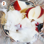 ミキサーに材料をすべて入れ、なめらかになるまで回す。