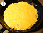 フライパンにオリーブ油を入れて中火にかけ、[1]を流し込み、スクランブルエッグを作るようにかき混ぜる。