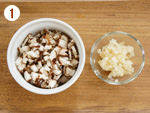 生姜としいたけはみじん切りにする。リーフレタスはさっと洗っておく。