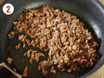 フライパンに油を入れて中火にかけ、生姜→ひき肉→しいたけの順に入れてよく炒める。