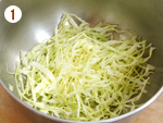 キャベツは千切りにしてさっと塩ゆでし、水気を切る。