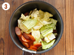 にんじん、キャベツ、[2]を入れて蓋をし、中火で3~5分煮る。