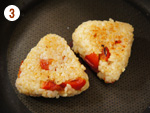 フライパンにごま油を入れて中火にかけ、おにぎりを両面焼く。