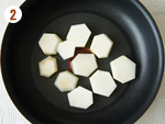 フライパンにオリーブ油を敷いて火にかけ、里いもの両面を焼く。