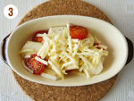 耐熱容器に[2]の里いも、ミニトマトを入れて上からチーズをかけてトースターで5分ほど焼く。お好みで黒こしょうやハーブを添えてもOKです。