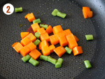 フライパンにオリーブ油を入れて火にかけ、人参といんげんを炒める。