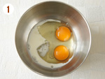 ボウルに卵を割り入れ、牛乳・塩胡椒を加えてよく混ぜる。
