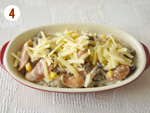 - ・ソーセージでタンパク質、牛乳でカルシウム、きのこで食物繊維が補えます。