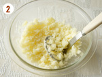 [1]をマッシャーで潰し、牛乳を加えて滑らかになるまで混ぜる。