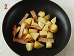 フライパンにオリーブ油をひき、ベーコンと①のじゃがいもを炒める。