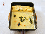 フライパンにオリーブ油をひき、①を3回に分けて巻いていく。具材の片寄りが気になる場合は巻いている途中に調整しましょう。