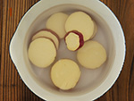 さつまいもは1㎝幅の輪切りにして水から茹でる。