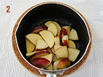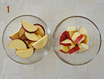 さつまいもは1㎝幅の半月切りに、りんごは8等分して1㎝の幅に切る。