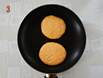 テフロン加工のフライパンを熱して一度濡れ布巾の上に置く。中火~弱火にして生地を流し入れ、両面を焼く。