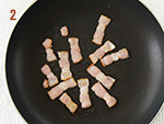 ブロッコリーは小房に分けて硬めに塩ゆでをした後、ひと口大に切る。ベーコンは1.5㎝幅に切る。