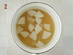 大根は皮をむいて5㎜幅のいちょう切りにする。大根葉は洗って2cmの長さに切る。