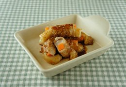 トップページ 時短レシピ お餅を使ったレシピ お餅を使ったレシピ お餅と明太子の揚げ春巻き 調理時間10分以内 エネルギー255.6kcal/人 POINT ・手間がかかると思われがちな春巻きも明太子を使うと下ごしらえや味付け不要で時短! ・食が細いお子さまのエネルギー補給として、また間食としてもオススメです。 ・もちもちとした食感で楽しみながら噛む力も高めましょう。 もっちりオムレツ 調理時間10分以内 エネルギー152.4kcal/人 POINT ・いつものオムレツにお餅を入れることで食べ応えも高まり、もっちりとした食感になります。 ・薄切りのお餅を使うと火の通りも早く時短!ヨーグルトを加えると固くなりにくく柔らかい食感に仕上がります。 ・お餅の溶けが悪い場合は完成後にレンジで温めるとしっかりと溶けます。 鮭とほうれん草の餅入りグラタン 調理時間15分以内 エネルギー242.4kcal/人 POINT ・たんぱく質を含む鮭、効率の良いエネルギー源となるお餅、カルシウム補給に役立つ牛乳やチーズ、鉄を含むほうれん草と成長期に必要な栄養素を詰め込んだお手軽グラタンです。 ・朝からしっかり食べることはもちろん、寒い時期は身体を内側から温めることで風邪予防にも役立ちます。 焼き餅入り白みそ汁 調理時間10分以内 エネルギー191.6kcal/人 POINT ・ごはんをなかなか食べてくれない・・・というお子様にオススメなお餅入りのお味噌汁。白みそを使うことで優しい甘さが引き立つ仕上がりになります。 ・お味噌汁を温めている間にお餅を焼くことで手際よく仕上げていきましょう。 肉巻き餅の胡麻照り焼き 調理時間15分以内 エネルギー358kcal/人 POINT ・お肉でお餅を巻くことで忙しい朝でもエネルギー源である炭水化物とたんぱく質を一緒に摂ることが出来ます。 ・さらに免疫力UPに役立つβカロテンを含むにんじんは照り焼きにするとにんじん嫌いなお子様でも食べやすくなります。 時短レシピ一覧に戻る