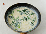 ほうれん草と牛乳を加えて全体を混ぜ、とろみが出てきたら②の鮭を加えて塩胡椒で味を調えたら器に盛る。