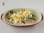 - ・たんぱく質を含む鮭、効率の良いエネルギー源となるお餅、カルシウム補給に役立つ牛乳やチーズ、鉄を含むほうれん草と成長期に必要な栄養素を詰め込んだお手軽グラタンです。