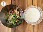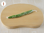 いんげんは塩(分量外)をひとつまみふりかけてラップで包み、電子レンジ500wで30秒加熱する。粗熱が取れたら1㎝の長さに切る。