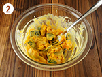 ①にカレー粉をまぶしてフォークで粗くつぶす。