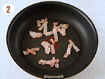 フライパンにごま油の半量を入れて中火にかけベーコンを炒める。