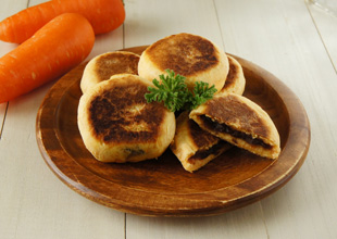 - ・ホットケーキミックスににんじんを加え、中には粒あんを入れた甘いおやき風おやつです。