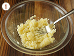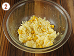 ①をフォークで潰し、コーンとチーズを加えて良く混ぜ合わせ、6等分にして丸める。