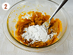 ①をフォークで滑らかになるまで潰し、片栗粉を混ぜ合わせる。