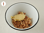 ツナ缶の水気を切ってボウルに入れ、マヨネーズを加えて混ぜる。