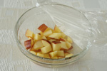 りんごは1.5~2cm角に切り、柚子果汁とはちみつを加え軽く和え、耐熱容器に入れてふんわりとラップをかけ600wの電子レンジで2分加熱する。