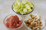 まぐろは2㎝角に切り、キャベツはひと口大に切る。しめじは石づきを取り手でほぐす。
