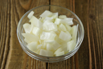 フライパンにオリーブ油を入れ中火にかけ、玉ねぎを炒める。