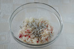 ボウルに胚芽ごはんと梅干し、しらす干し、白ごま加え混ぜ合わせる。