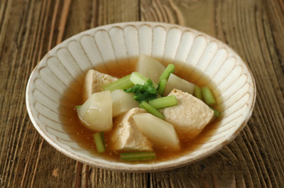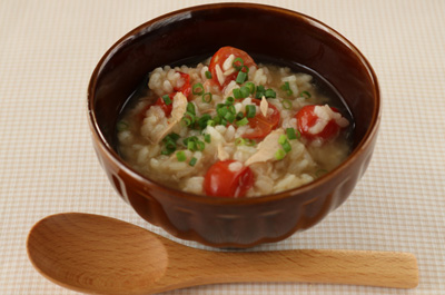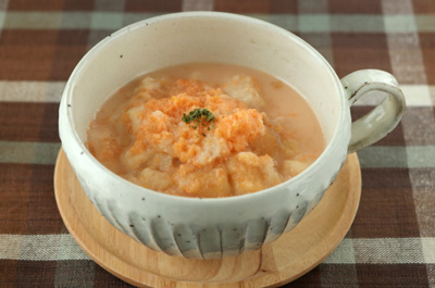 トップページ 時短レシピ おなかに優しいレシピ おなかに優しいレシピ ツナトマト雑炊 調理時間15分以内 エネルギー221.3kcal/人 POINT ・お腹に優しい、つまり胃腸への負担を減らすためには、温かいものがオススメです。ごはんもしっかりと水分を含ませ柔らかくすることで食べやすく消化も早くなります。 ・また、油分が多いメニューも消化不良の原因となるので、ここではツナ缶は水煮を使用します。 かぶとお豆腐のとろみ煮 調理時間15分以内 エネルギー108.3kcal/人 POINT ・食物繊維の多い野菜はしっかり加熱して繊維を柔らかくすることでおなかにやさしくなります。また、たんぱく源でもある豆腐も冷たいままではなく、温めたほうがおなかに優しくなります。 ・とろみを少しつけると、冷めにくくなります。 はんぺんのかきたま汁 調理時間15分以内 エネルギー100.3kcal/人 POINT ・成長期に摂りたいたんぱく質の中でもあっさりと食べられる白身魚はおなかに優しい食材です。手軽に摂り入れるなら魚のすり身であるはんぺんもオススメです。 ・はんぺん自体に塩分が含まれるので、味付けは薄めを心掛けましょう。卵を加えることでコクが増します。 人参たっぷりミルクパンがゆ 調理時間15分以内 エネルギー217kcal/人 POINT ・パンは水分をしっかりを吸わせるとより柔らかくとろけるような食感になります。また、温かいもので胃腸を内側から温めることで冷えない身体作りを心掛けましょう。 ・油分が多い食事は胃腸に負担がかかりやすいので、今回の牛乳は低脂肪をオススメします。生野菜に含まれる食物繊維はすりおろして加熱することでよりおなかに優しくなります。 あったか南瓜ヨーグルト 調理時間10分以内 エネルギー110.7kcal/人 POINT ・冷たい食材はおなかを冷やす原因となります。しかし、ヨーグルトの生きた菌を活かすためには加熱のしすぎはNG。温めたかぼちゃにかけることでほんのりあたたかい状態にすることが出来、おなかに優しいヨーグルトサラダになります。 時短レシピ一覧に戻る