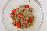 最後に4等分に切ったミニトマトを加え混ぜ合わせる。