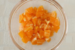 みかんは外側の皮をむき、食べやすい大きさに切る。